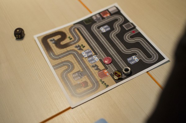 - пост ГАИ (проезжая мимо него нужно было бросить кубик, худший исход - пропускаешь ход, застряв на посту. На бросок влияли некоторые вещи)