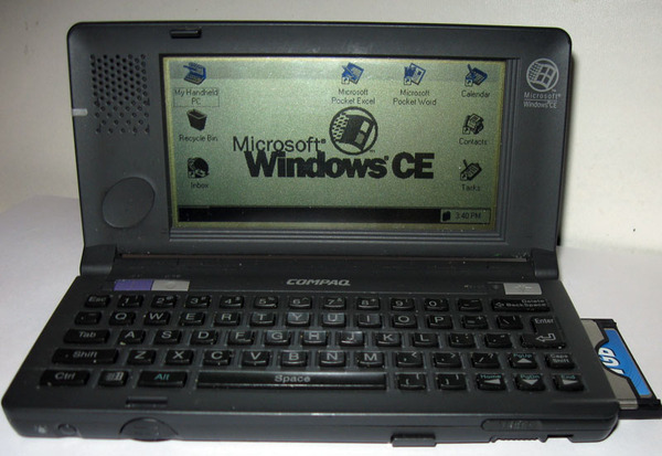 В 1996 году разработка получила название Windows CE 1.0. Сотрудничество с Casio, Compaq, HP, LG Electronics (бывшая GoldStar), NEC и Philips позволило в кратчайшие сроки выпустить несколько различных устройств, таких, как HP 300LX, Philips Velo1, NEC MobilePro 400, Cassiopeia A10, Compaq C120, LG Phenom GP40M. Все эти машинки были клавиатурными, имели соответствующие размеры и вес (от 350 до 450г) и для использования в качестве карманного помощника подходили слабо. Вышедший примерно в это же время Palm Pilot пользовался намного большим успехом. Что, впрочем, не помешало продать около полумиллиона устройств с Windows CE 1.