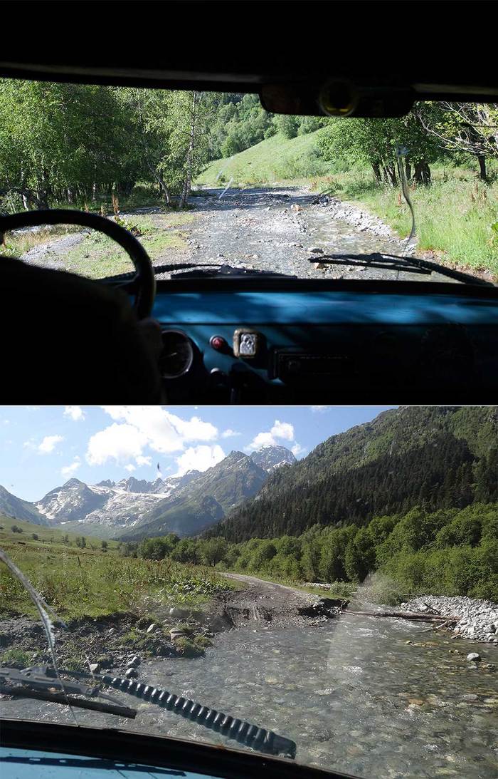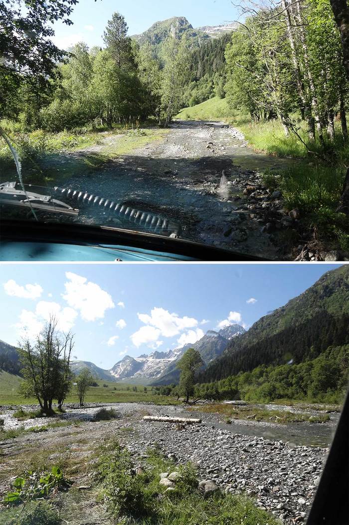Все в сборе. Дорогу до места, от которого нам предстояло идти пешком, описать непросто. Возможно, фотографии немного выручат. Подобные буераки, броды и каменные завалы возможно преодолеть только на старом добром Уазике. Подъем к водопаду Джур-Джур в Крыму после такого покажется легкой прогулкой в воскресный день.