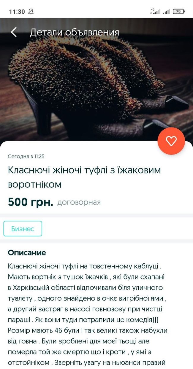 Причем это не первое объявление продавца, ранее он публиковал объявление о продаже кроссовок с натянутых кротов)))