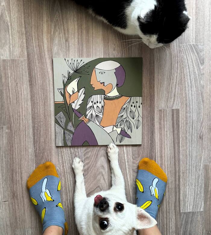 Чуть описания картины для вас. Девушка пытается найти гармонию в себе. Её разум стремится всё контролировать, а эмоции и чувства тянут в другую сторону, подталкивая к необдуманным решениям. (ох, уж эти женщины :) Эти две части, как лепестки одного цветка. Между ними рождается настоящая личность.