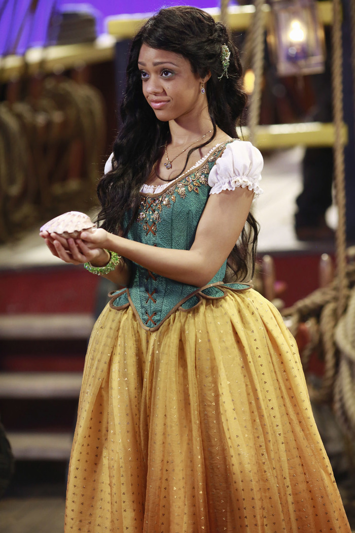 Однажды Урсула поёт, чуть не убив весь экипаж Весёлого Роджера, но в последний момент даёт им уйти. Посейдон разочаровывается в действиях дочери. Урсула настаивает, что пение - это единственная память о матери. Она не желает использовать свой дар во вред другим. Отец приказывает русалке повиноваться, пока та живёт в его океане. Тогда Урсула крадёт из хранилища браслет, который позволяет ходить по земле.Урсула планирует попасть в Сияющую гавань и, чтобы заработать достаточно золота, поёт в местной таверне. Там она знакомится с Крюком, капитаном Весёлого Роджера, который предлагает отвезти её в Сияющую гавань.