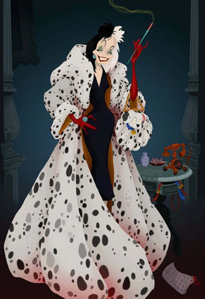 Тем временем, Круэлла незаметно похищает волшебное перо.Вернувшись домой, она подчиняет собак и приказывает им растерзать Мадлен. Затем ведьма убивает далматинов, чтобы сшить из их меха шубу. Когда работа почти завершена, к ней приходит репортер. Осознав, что она использовала его, несчастный Айзек хватает перо. Круэлла пытается помешать и случайно опрокидывает на себя чернильницу, которая полностью меняет внешний вид и делает волосы чёрно-белыми. Круэлла наводит пистолет на Исаака, однако тот успевает написать, что она никогда не сможет убивать.Дальше события сериала развиваются в наше время