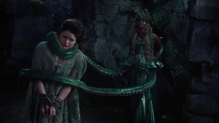Вскоре Малефисента превращает принца Филиппа в зверя и изгоняет в далекие земли, чтобы он не смог разбудить свою возлюбленную.В надежде победить Белоснежку Злая Королева меняет у Малефисенты Тёмное проклятье на заклятье сна.