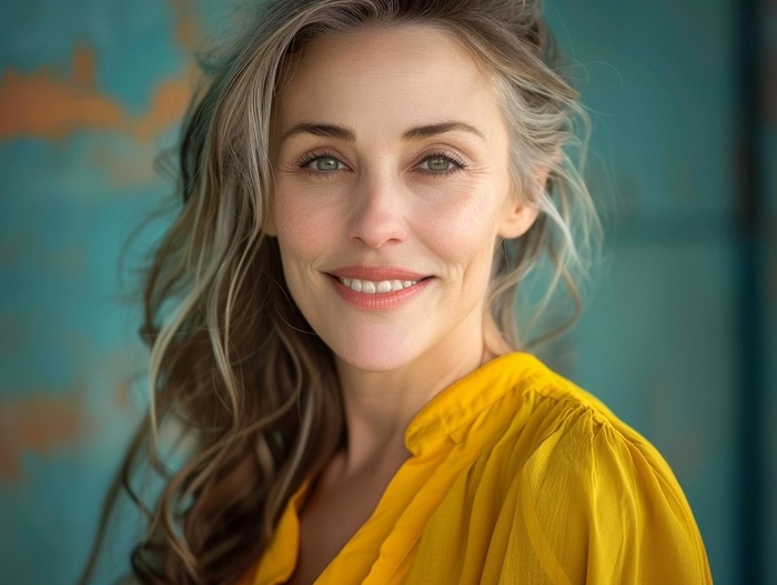 Для портрета: "Professional headshot photograph, young woman in her 30s, confident smile, natural makeup, business attire, soft studio lighting, shallow depth of field, shot on Sony A7III, 85mm lens, f/2.0, clean white background, high resolution, sharp focus"