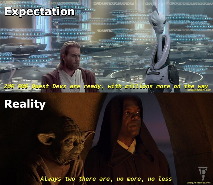 Раньше, этот мем использовался каждый раз, когда кто-то плакался по поводу маленького количества разработчиков квестов в нашем распоряжении. Но больше этого не будет!