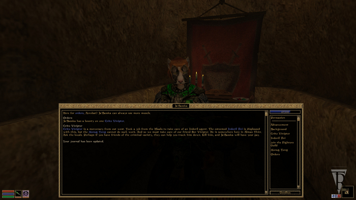 Пока всё это происходило, viol непрерывно занимался частыми жалобами игроков по поводу отсутсвия ролевых причин посетить материк. Решение стало добавление серий простых квестов, добавленых квестодателям в ваниле, которые собраны вместе в опциональном плагине TR_Factions. Несколько таких квестов уже завершены (ревью от FlinSunset и Revane):