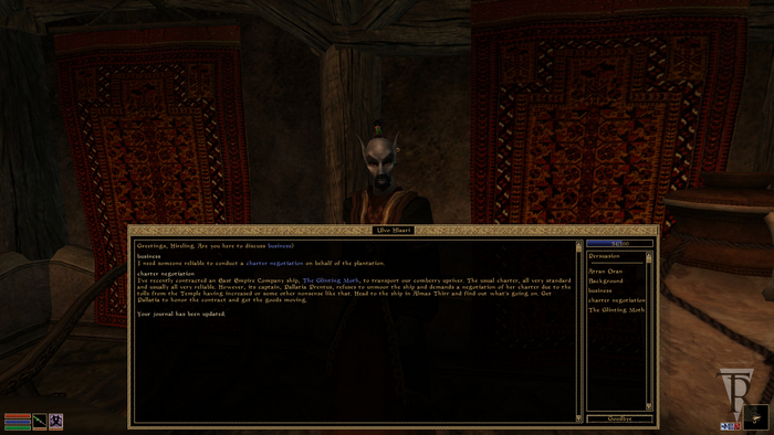 Переделка диалога для "Искателя острых ощущений Трибунала", уже выпущенного квеста, от Sultan of Rum