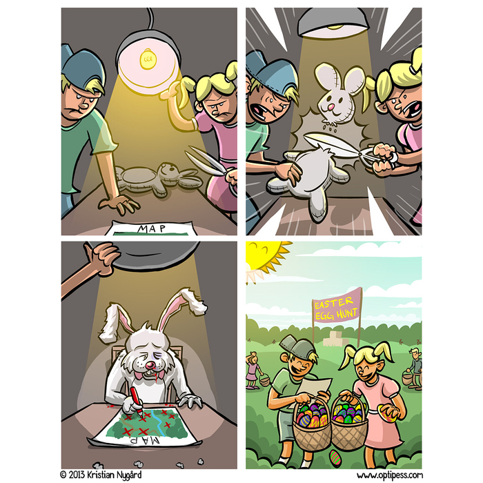 87 HelenFy Комиксы Пасхальный допрос 7 лет назад Показать полностью 1 Optipess Пасха Допрос Скажи Тег для красоты Скажи где