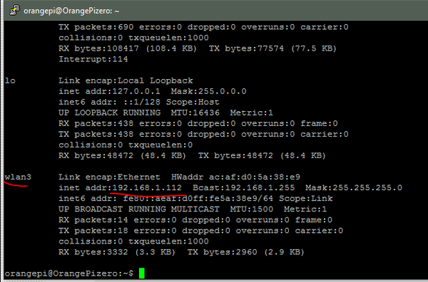 После этого отсоединяем Orangepi от роутера и подключаемся к ней используя новый адрес Ip, при каждом включении Orangepi сама должна подсоединиться к сети.