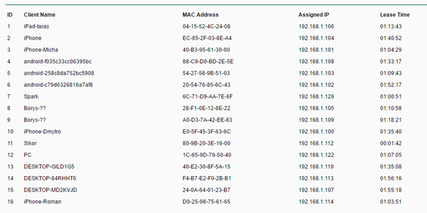 Пока OrangePi включается, заходим на роутер и открыавем список клиентов в сети роутера