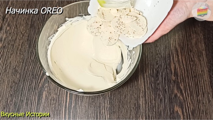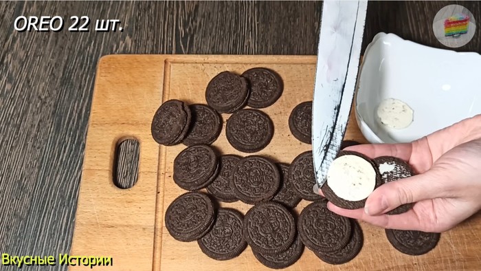 2) Печенье Орео отделяю от крем в отдельную посуду (он нам еще пригодиться).