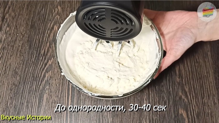 9) Сливки жирные холодные (минимум 4 часа в холодильнике) взбиваю миксером 3-4 мин, консистенция напоминает жидкую сметану.