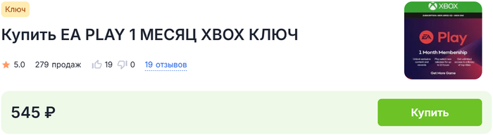 Еще один вариант — купить карту продления EA Play, выпущенную специально для Xbox. Правда, в России их не продают официально. Придется искать на ggsel или у реселлеров.