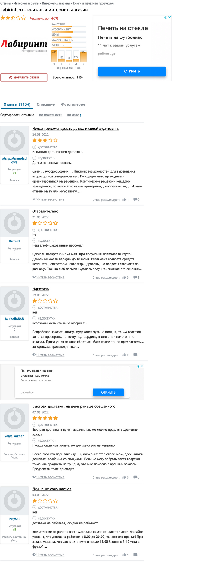 Ресурс, которому я скромно приписываю категорию “рабочая лошадка”, остался компанией не замечен. Резкий негатив сюда поступает эшелонами. Но Лабиринт решил свои силы и ресурсы бросить на борьбу с “мусорной площадкой”, которая и так вылезла в первую половину топ-10 выдачи.