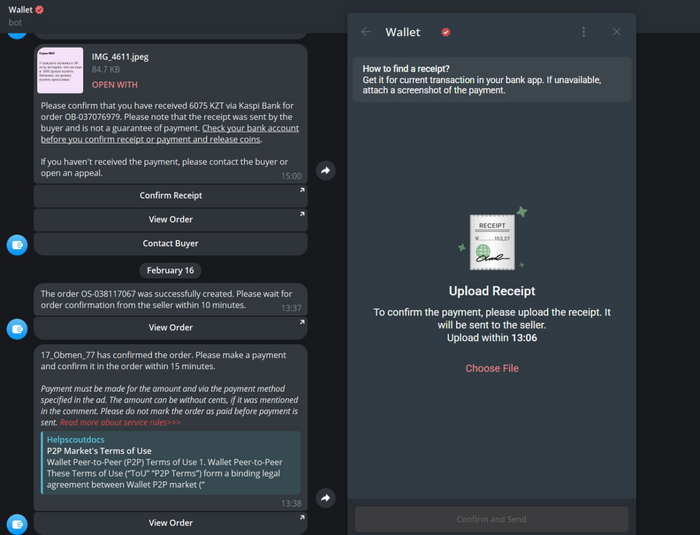 Мы переводим деньги и жмем, что "деньги переведены". После этого прикрепляем PDF и ждем пока нам скинут крипту