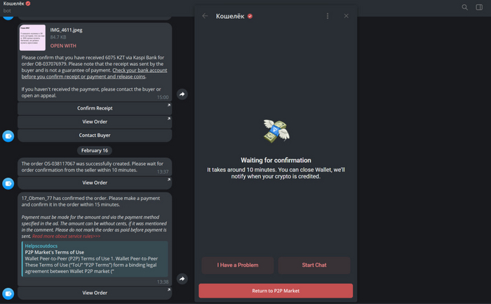 Важно понимать, что продавцу проблемы тоже не нужны, так как в момент принятия сделки криптовалюта на его счете замораживается.