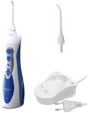 Уникальное предложение - ирригатор Panasonic EW1211 со средством очистки резервуара Fazzet в подарок (1 таблетка)! Модель производится много лет и зарекомендовала себя как самая надежная. Здесь используется уникальная технология «двойного насоса». Струя жидкости не только отлично насыщается пузырьками воздуха, но и пульсирует с высокой частотой. В корпусе присутствуют силиконовые вставки, благодаря чему он не выскальзывает из рук. Питание происходит от высококачественного встроенного аккумулятора с зарядкой от подставки с индукционным зарядным устройством (в комплекте).ссылка на него
