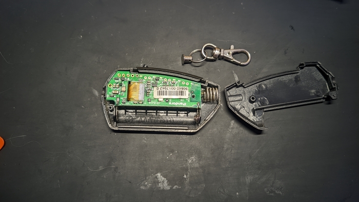 Всем добрый день. Для разнообразия контента решил выложить данный, на мой взгляд, интересный ремонт. Обратился ко мне коллега, с тем, что на него напали все 33 несчастья - в один прекрасный день с утра выходит он к машине - а машина не алло. Не реагирует на брелок. Глядь - а там кнопка то не срабатывает. Но это пол беды. Вторая часть беды в том, что как то он уже менял другую кнопку на этом брелка, и цена была кусучая. Вот и приехав на работу рассказал об этом всем, на что ему было предложено своими силами починить данный девайс. Опыт до этого по замене кнопок на брелка был, но только со Старлаином, и, как оказалось, Пандора все таки умеет подкинуть приколов, если их не чинишь каждый день. Ну, в общем, по порядку: так выглядит брелок с двух сторон.