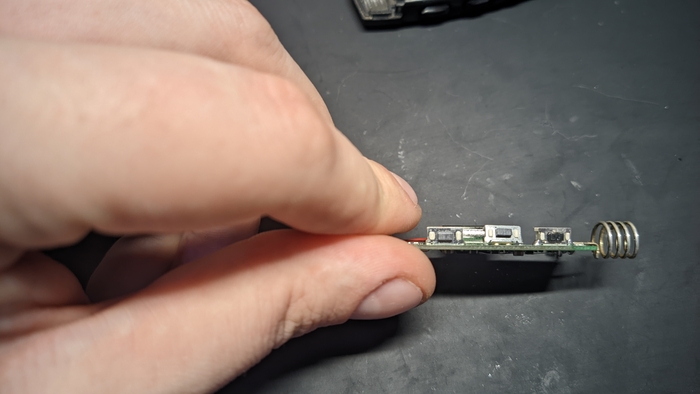Далее - смотрим на кнопку и понимаем, что ей как то прям плоховато, и она просится всеми силами наружу, подальше с этой платы. Хорошо, можно ей и помочь с этим.