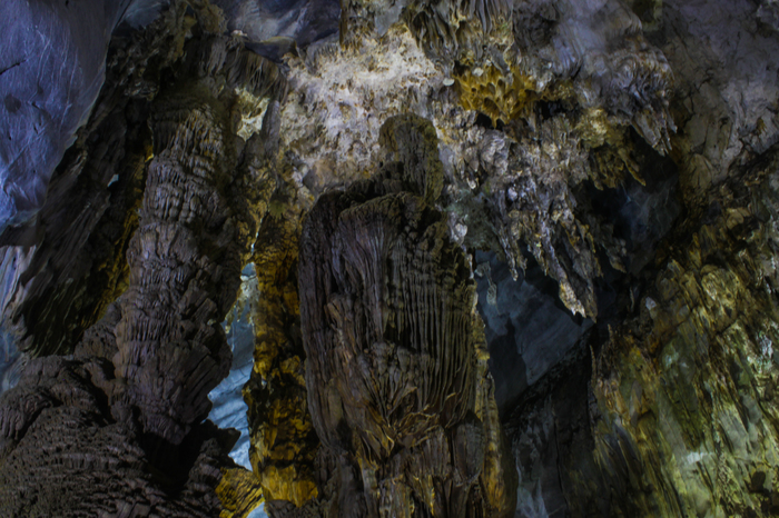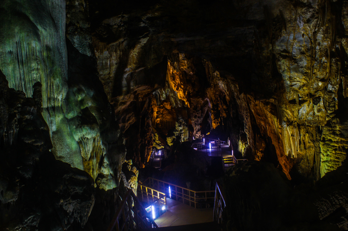 Фотка сделана со смотровой площадки в этом зале. Вообще для Вьетнама мне показалось, что пещера оборудована на очень хорошем уровне для туристов. Вся зона прекрасно освещена, а стены и потолок пещеры подсвечиваются разноцветными лампами - выглядит все это очень красиво, поэтому выкладываю еще пачку фоток из туристической зоны: