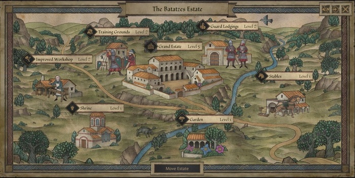 Постройки в поместьях имеют разный визуальный облик в соответствии с культурой. На текущий момент у нас готовы темы запада, Византии, Ближнего Востока и Северной Африки.