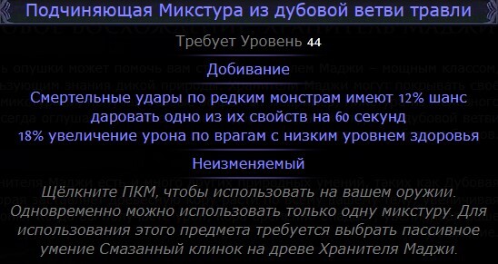 Выращиваемые вами на Дереве зарождения уникальные предметы тоже могут стать нечестивыми, мутируя одно из имеющихся свойств в другое, что может привести к интересным новым способам использования уникального предмета.