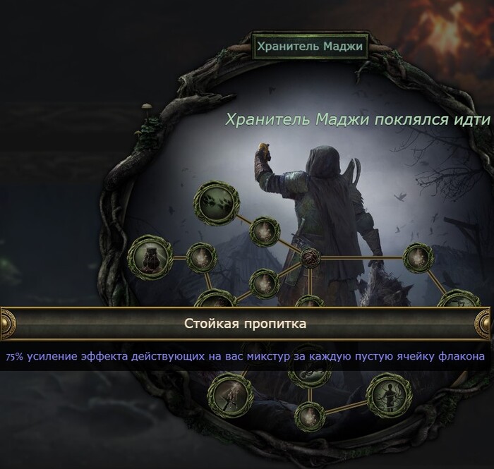 Будучи источником нечестивого созидания, Дерево зарождения может выращивать самые разные исковерканные награды наподобие новой валюты, уникальных предметов, и особую новую разновидность предметов – наросты. Дерево зарождения также само обладает древом умений, с помощью которого можно улучшать выращиваемые награды.