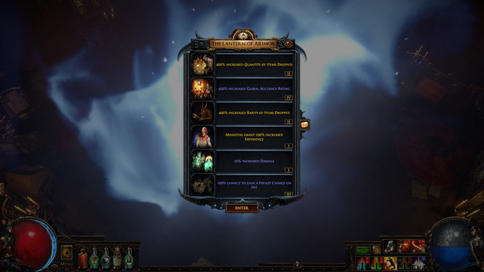 Мы добавляем больше дюжины полезных новшеств на основании просьб нашего сообщества. Наёмники Кражи теперь автоматически начинают с максимального уровня, а ваше древо пассивных умений Атласа, как и обычное древо пассивных умений, можно будет мгновенно сбрасывать целиком за золото. Повышайте уровень всех ваших камней одним щелчком, а ещё можно опознавать все предметы в вашем инвентаре разом, без свитков мудрости!