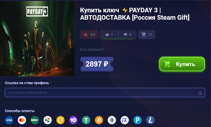 Переходим в категорию PayDay 3, находим интересующее нас предложение, смотрим на количество продаж, отзывы, рейтинг продавца. И внимательно читаем описание товара.