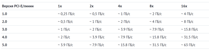 В отрыве от количества линий есть еще и другая характеристика — версия PCI-E. На данный момент существуют пять поколений шины, каждая из которой отличается от предыдущей удвоением пропускной способности. В одной системе для разных внутренних соединений могут использоваться разные версии протокола.