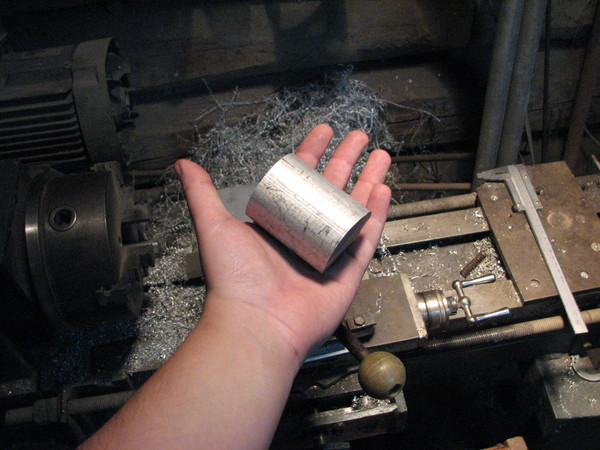 Обрезаю, высверливаю с обратно стороны, чтобы был такой же конус, больше объем и меньше веса.