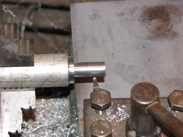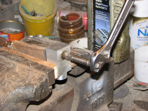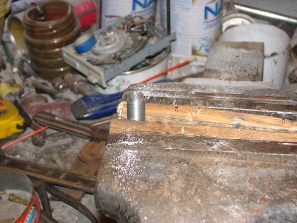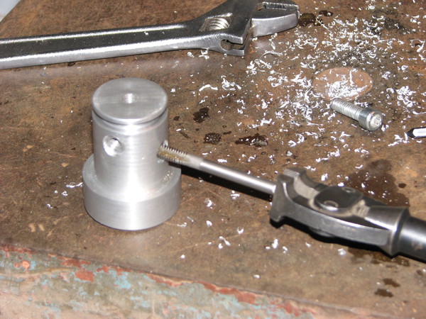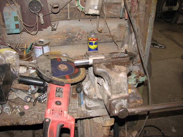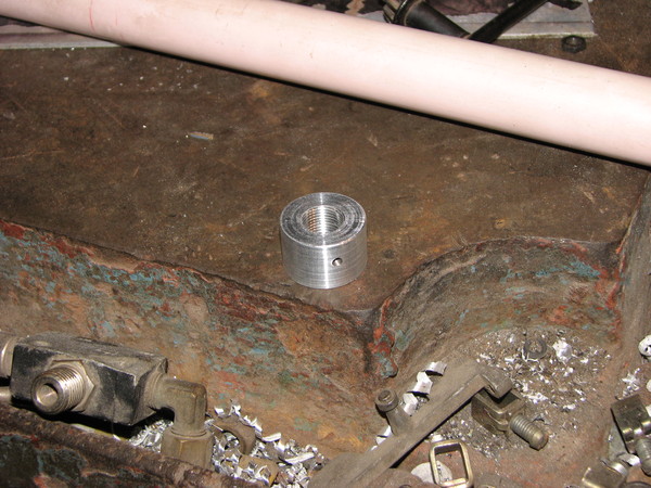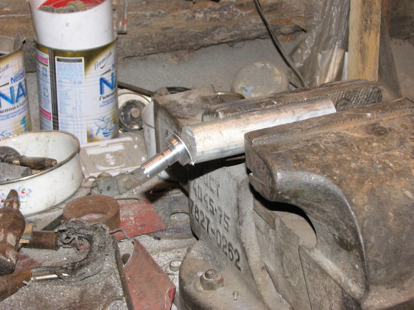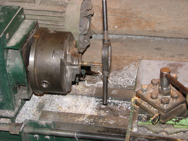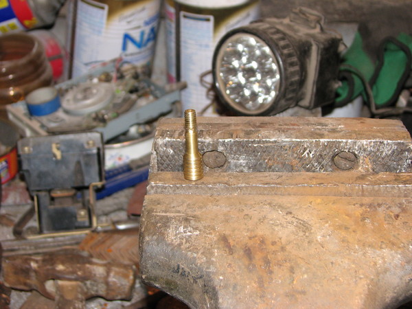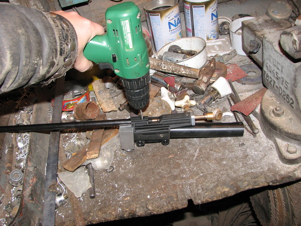 Теперь гайку вставляю в трубу и выверив глубину посадки, делаю крепление болтиком.