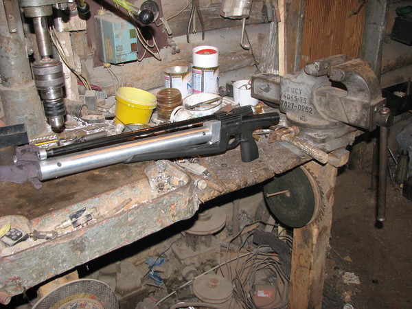 Был очень удивлен работой модера, без него грохот такой что стрелять не хочется, а с ним только щелкание ударника слышно, великолепно. Делал винтовку долго, никуда не спешил, месяца 2 наверное, по выходным и иногда по вечерам, когда скучно было. Прицел пристрелял с 15 выстрелов, с минимальными поправками. Были конечно и проблемы, т.к. делаю такое в первый раз, то неоднократно было такое что сделав деталь, корпус клапана например, выяснялось что я что то не учел и корпус надо делать новый, итого я этот корпус три раза точил, тяжела наверное доля людей такое проектирующих на бумаге, все предусмотреть надо. В общем кому интересны какие либо еще подробности, спрашивайте, для скептиков скажу что пользуюсь винтовкой уже два месяца, ушло около 500 пуль, никому руки не оторвало и глаза не повыбивало, ввиду бесшумности - соседи спят спокойно, место куда ставлю мишени, огорожено толстым деревянным щитом, пуля не пробивает.