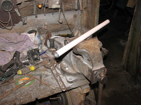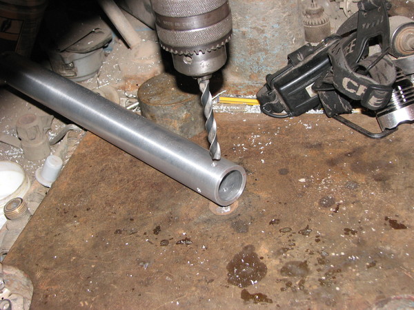 Далее берется дюралевая трубка потоньше, обрезается и в ней насверливаются боковые отверстия.