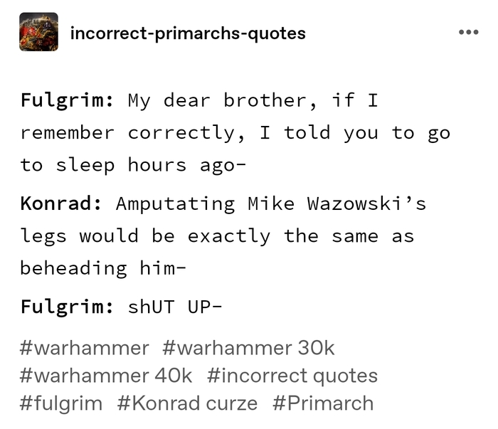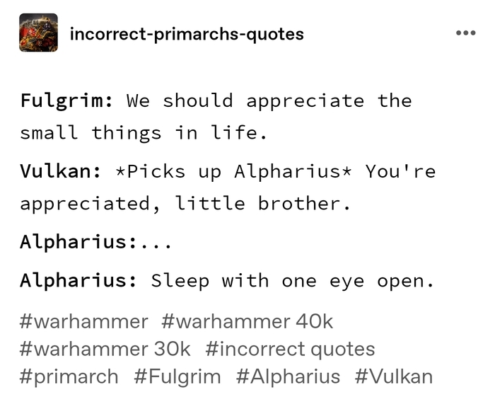 Фулгрим: Мой дорогой брат, если я правильно помню, я сказал тебе идти спать час назад...