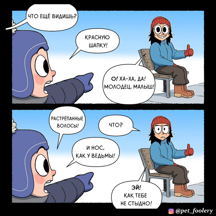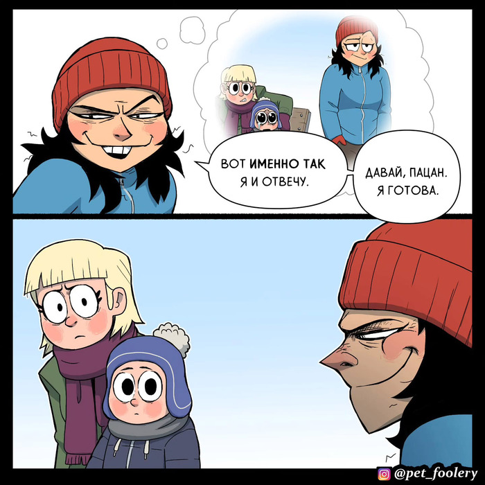 От автора: "Короче, недавно я смотрел видео на YouTube про жизнь людей в глухой сибирской тайге. Там показывали одну семью, у них ещё был маленький ребёнок. И я вдруг подумал: а что было бы, если бы этот ребёнок переехал в США и пошёл в американскую школу? Так и родилась идея для этого комикса."