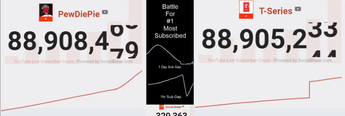 PewDiePie потерял ненадолго первенство, но вернул первое место спустя 2 минуты
