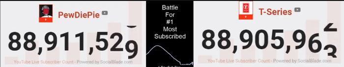 Вот оно и случилось, приблизительно в 22:50 YouTube добавил какое-то количество подписчиков для T-Series, благодаря чему она вырвалась вперёдА вот и само количество подписчиков в 22:50 по МСК