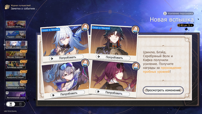 А и спасибо разработчикам за усиления Цзинлю, Кафки, Блейда и Серебрянного Волка. По крайней мере 20 камней на дороге не валяются) и у меня только Кафка и Цзинлю, но тоже хорошо))