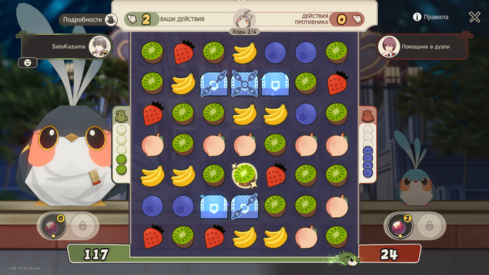 Ну и завершить я хочу тем, что снова 3 в ряд добавили. Правда я ссу играть с другими людьми, но зато можно получать камни и тратить их на крутки!