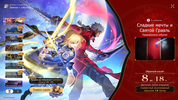 В целом я доволен. Меня ждёт сюжетный контент, прохождение Фаеноном Виртуальной Вселенной и прокачка его на максимум, а также приключение кроссовер с Fate, где я смогу увидеть Сайбер, сделать фото и видео, и похвастаться перед другом, который также как и я смотрел аниме, но в игру не играет.
