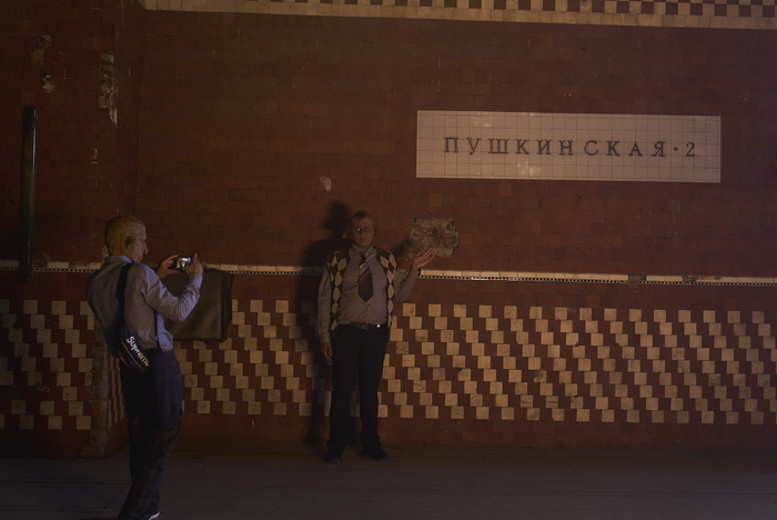 Сама "станция" снималась в Москве, в подвалах Винзавода. Ну и, конечно же, туда нет никакого прохода со станции метро Пушкинская в Питере. Там даже двери нет, её принесли туда постановщики. Ниже 2 видео, как выглядела сцена в сериале, и аниматик, как её планировали снять.