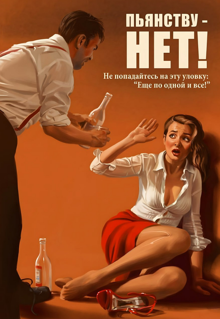 Ретро плакат "Пьянству - нет!" размером 42X30см на крафт-бумаге плотностью 120 гр/м2. Стоит такой плакат около 183 руб. ссылка на источник