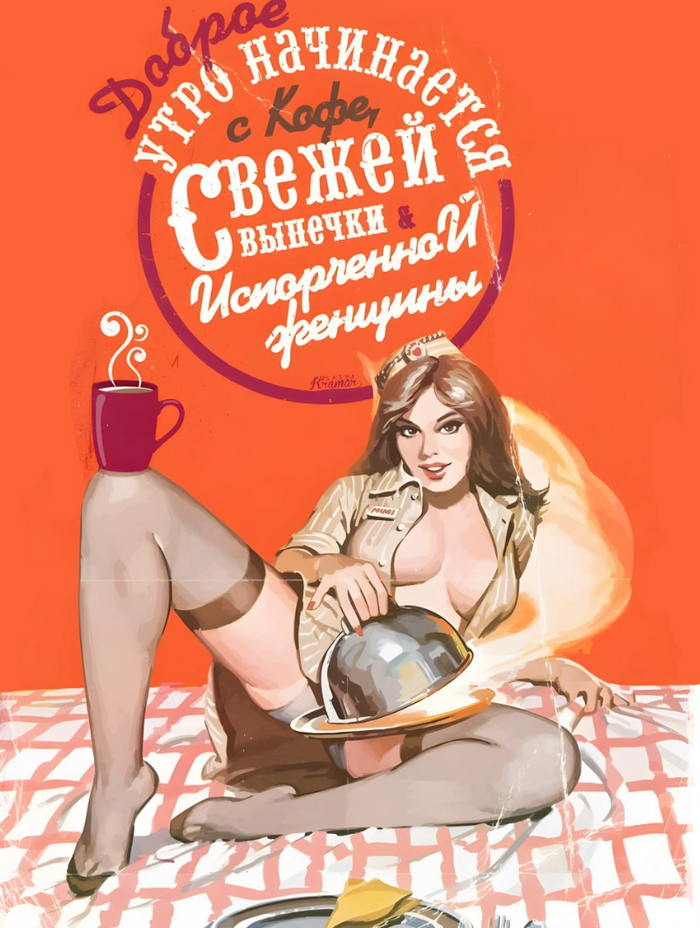 Не обошла мода на “Пинап” и наших художников, которые удивительно точно смогли проиллюстрировать жизнь в СССР с намеком на агитплакаты того времени. При этом на некоторых картинах можно проследить связь времен современной России и СССР.