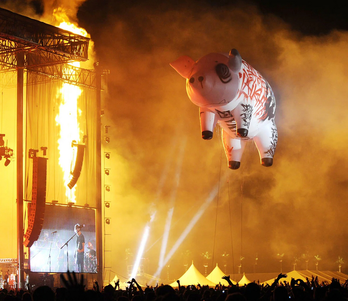Гигантская надувная свинья стала символом эпохи альбома Animals. Фестиваль Coachella Valley, Калифорния, 27 апреля 2008 года