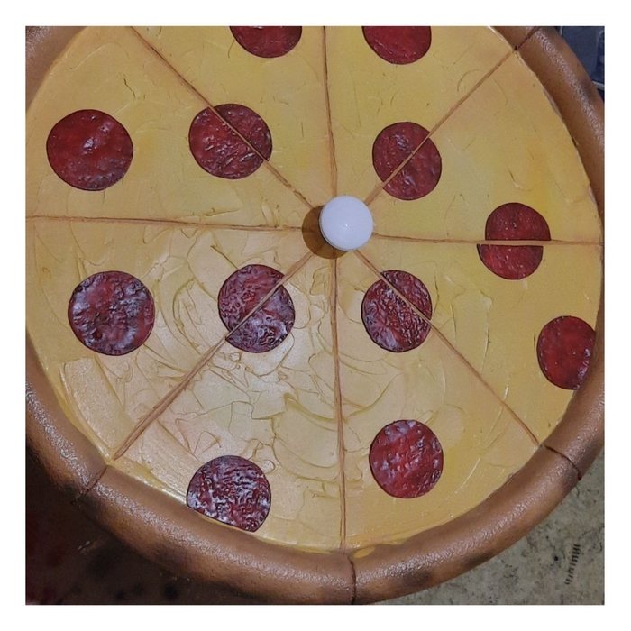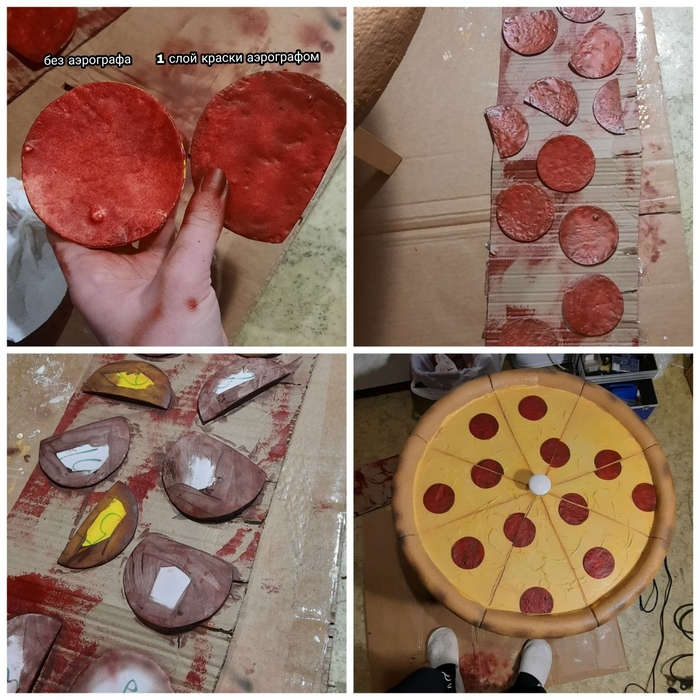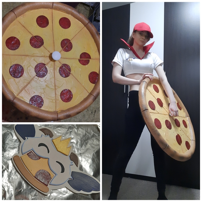 В этом косплее очень много ручного труда - пошив кофты и перчаток швеей, моя укладка парика и отрисовка деталей, а с моим папой мы вместе сделали пиццу - которая крутится!!!!!