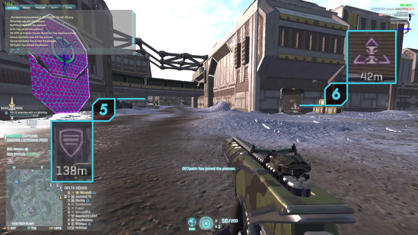 6. Активный HIVE. Не так давно была введена система построек, о которой я буду рассказывать ещё не скоро. Коротко говоря, такими значками обозначаются активные вражеские HIVE (устанавливаются игроками), которые делают вклад в накопление очков победы у фракций. Попробуйте как-нибудь туда добраться, если интересно и посмотреть что же это такое.