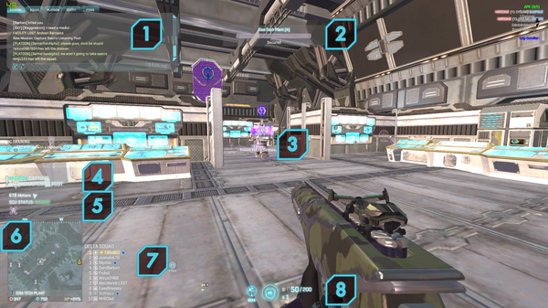 1. Окно чата. Основные команды, которые вам понадобятся - это /region - писать своей фракции в регион, /whisper или /tell и ник через пробел - писать игроку, /yell - писать в общий чат локации (в определённом радиусе, точно не подскажу но около километра), /squadsay - писать в отряд, /platoonsay - писать во взвод (платун), и /outfitsay - писать в подразделени (аутфит).