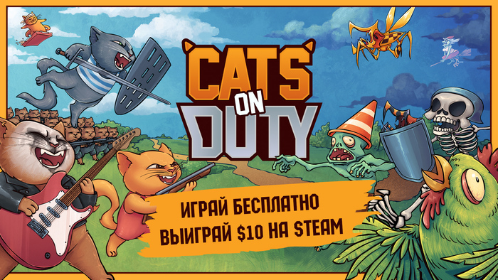Суть в том, что если вы сыграли в демку - запостите где-нибудь в соцсетях (в том числе, можно и на Пикабу) скрин/гифку/видео со своим самым мощным отрядом котанов, который удалось собрать к концу демо. И не забудьте тег/хэштег "CatsOnDutyContest". На следующей неделе мы отсмотрим все посты. Ну как "мы"... Человек, отвечающий за баланс) И выберем самые мощные отряды. Всего 10 штук (10 человек). И подарим им по $10 (или 1000 рублей) на Steam аккаунт.